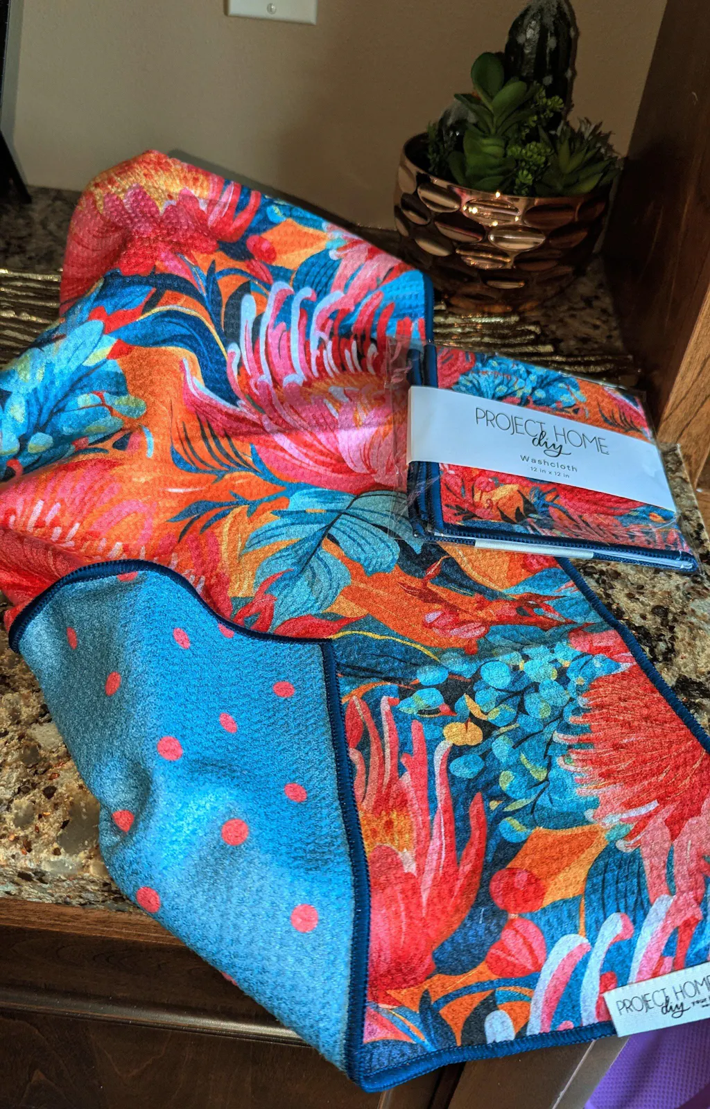 We offer our towels in two convenient sizes: a 16x26 inch hand towel, ideal for standard countertops and a 12x12 inch washcloth.